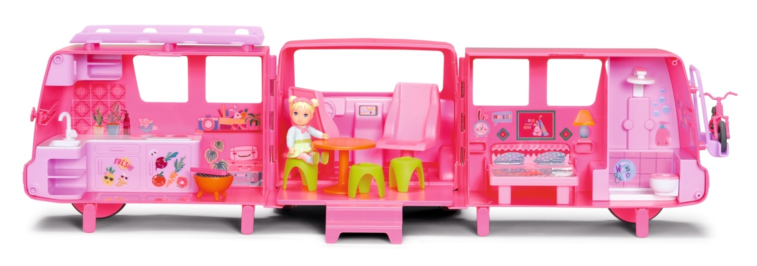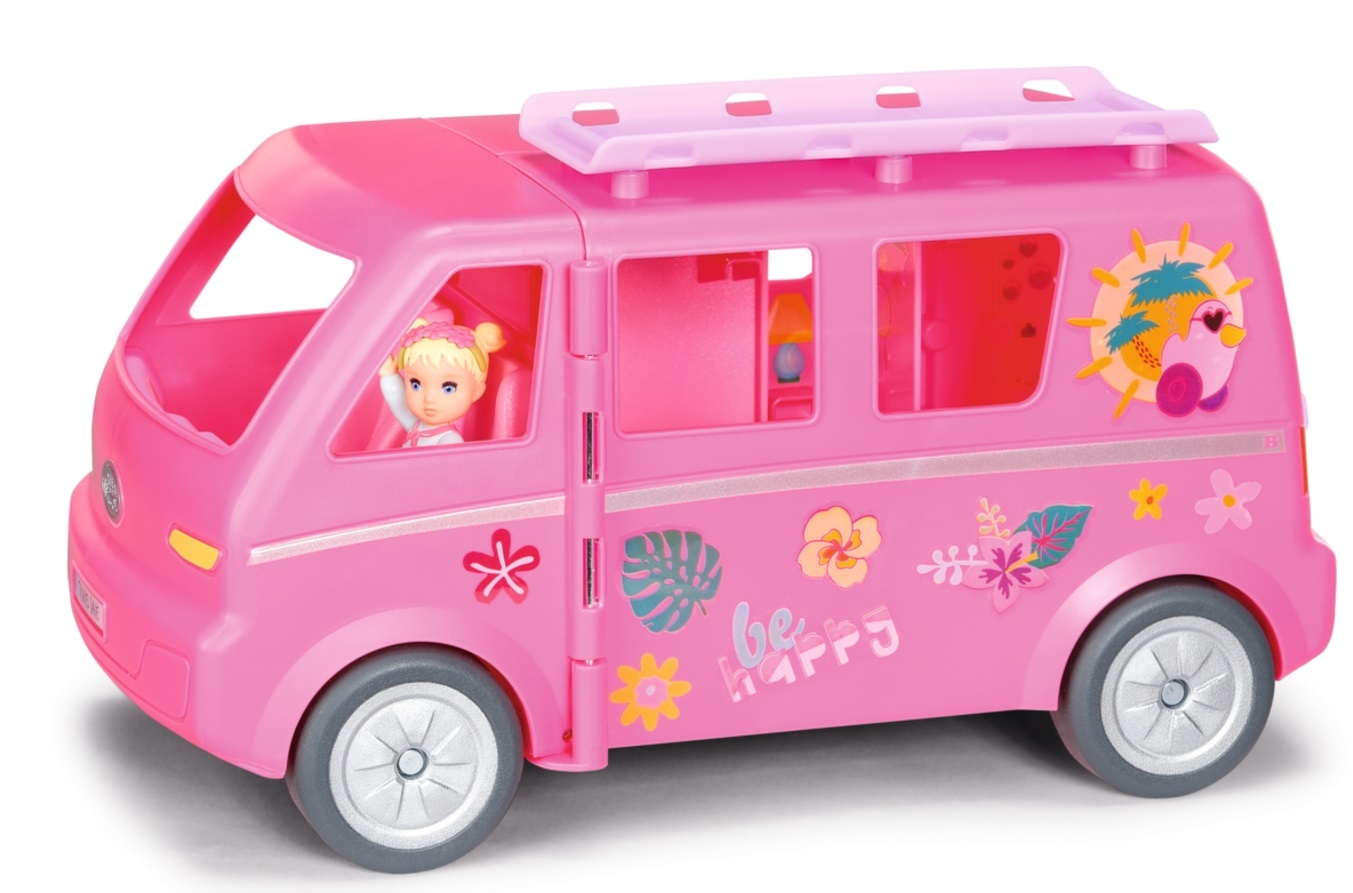 Zestaw Minis z samochodem kempingowym i lalką