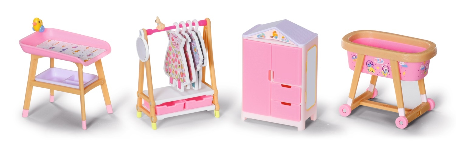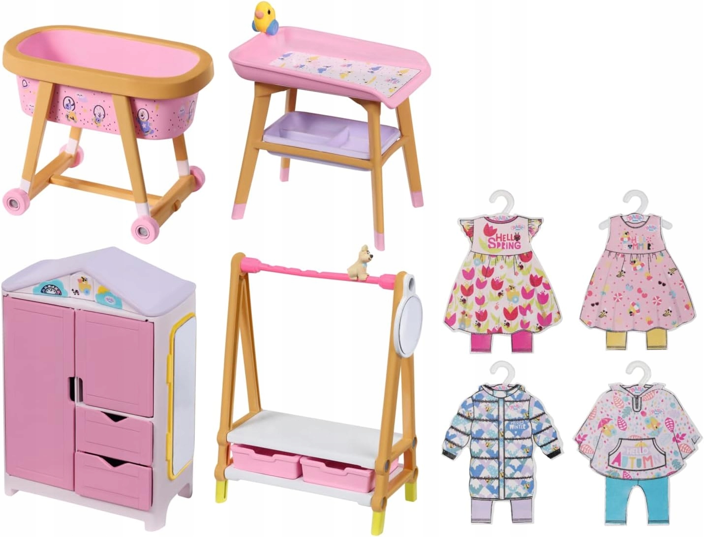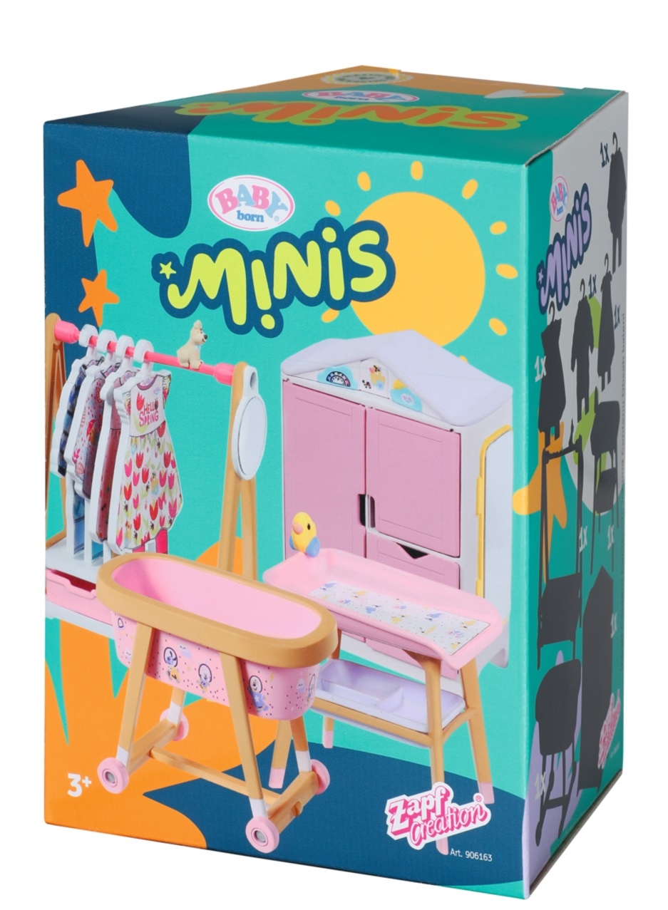 BABY BORN MINIS Zestaw Mebli Szafa Łóżeczko Przewijak Akcesoria dla Lalek