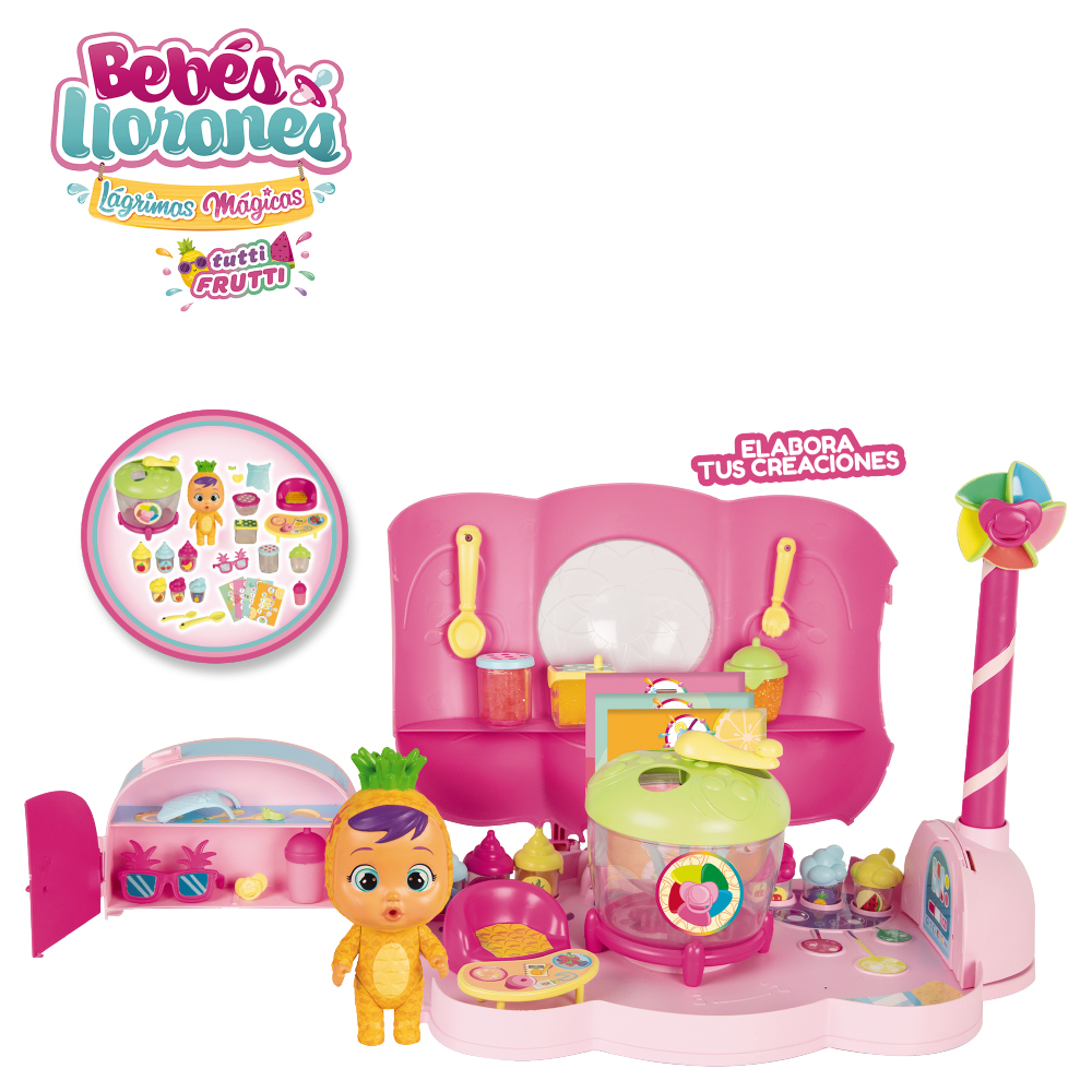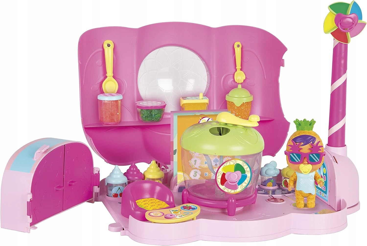 Cry Babies Tutti Frutti Fabryka Pii to produkt, który przenosi dzieci do kolorowego i aromatycznego świata doliny Tutti Frutti. Ten rozbudowany zestaw do zabawy od IMC Toys to nie tylko urocza lalka, ale całe interaktywne centrum kreatywności, w którym główną rolę odgrywa Pia – postać w przebraniu ananasa. Fabryka pozwala na odgrywanie scen znanych z popularnego serialu animowanego, w którym bohaterki używają swoich magicznych łez do tworzenia pysznych, owocowych smakołyków.