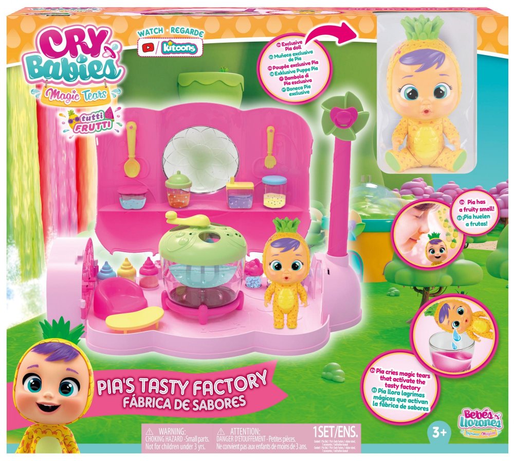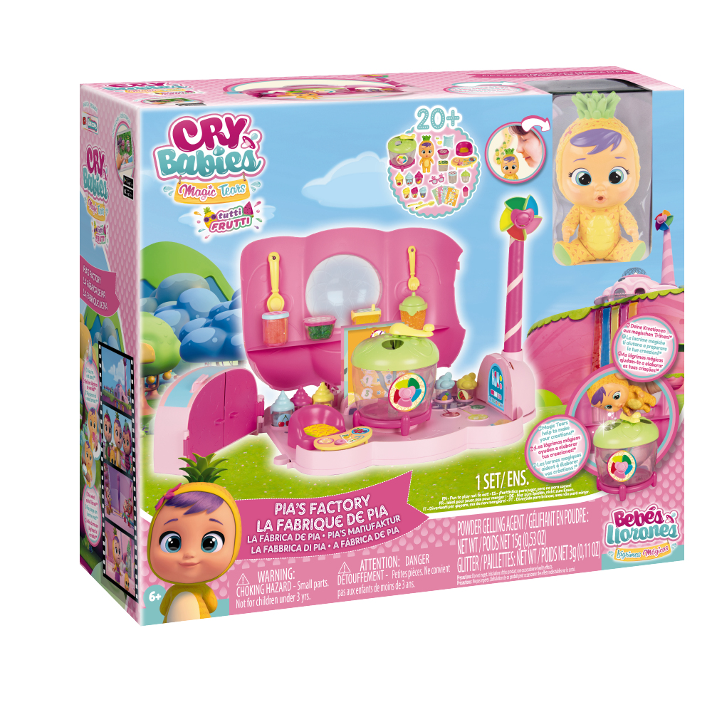 W sercu zabawy produktem Cry Babies Tutti Frutti Fabryka Pii drzemie pasja tworzenia i dbania o innych. To doskonały wybór na prezent urodzinowy, mikołajkowy czy gwiazdkowy. Duże, kolorowe opakowanie fabryki robi ogromne wrażenie i zapowiada wiele godzin angażującej zabawy, która łączy w sobie elementy eksperymentów, gotowania i klasycznej opieki nad lalką.