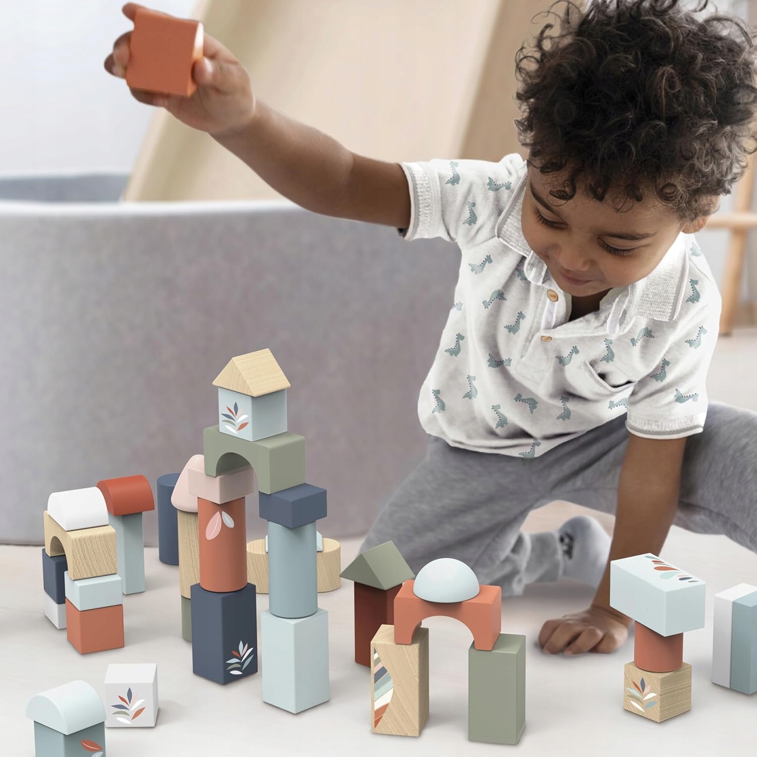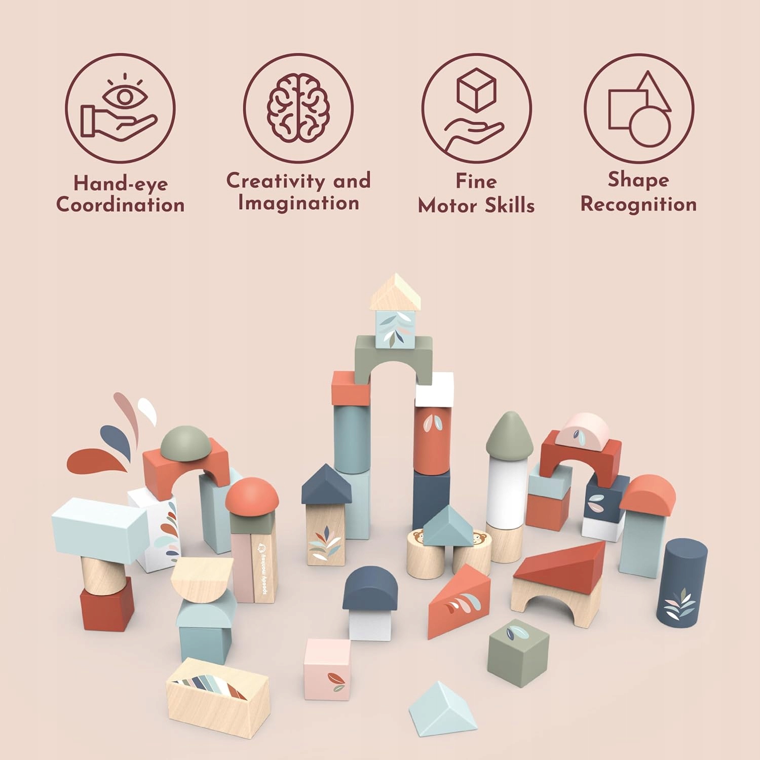 Zabawa zestawem Drewniane klocki dla dzieci Nici 50 sztuk to doskonały trening dla wyobraźni przestrzennej. Dziecko ma do dyspozycji różnorodne bryły – od sześcianów, przez walce, aż po trójkąty – co pozwala na tworzenie zamków, wież czy fantazyjnych miast. Naturalna tekstura drewna dostarcza przyjemnych bodźców dotykowych, a odpowiednia waga klocków ułatwia naukę precyzyjnego chwytania i układania. W przeciwieństwie do plastikowych odpowiedników, klocki drewniane są znacznie trwalsze i mogą służyć kolejnym pokoleniom młodych budowniczych.
