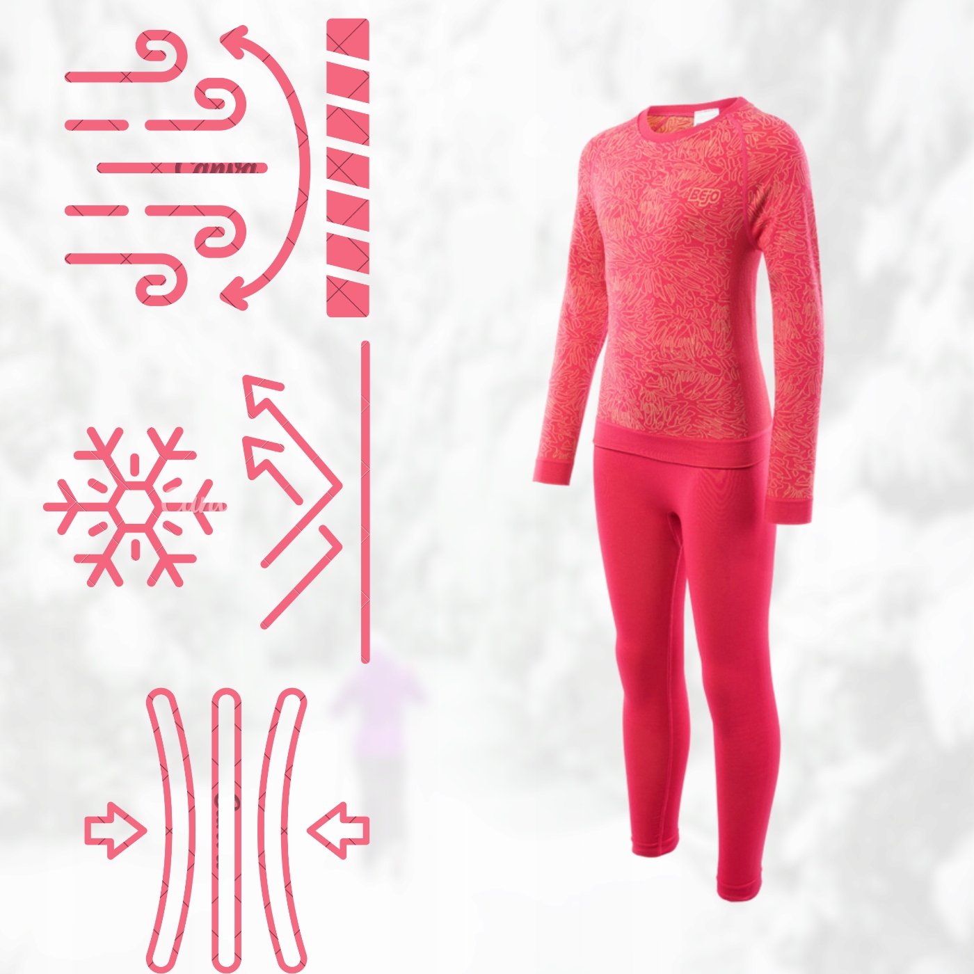 Wybierając ten model, inwestujesz w zaawansowaną ochronę dla swojego dziecka. Komplet bielizny Bejo składa się z koszulki z długim rękawem oraz getrów, które idealnie przylegają do sylwetki, nie krępując przy tym ruchów. Różowy kolor w połączeniu z ergonomicznymi strefami wentylacji sprawia, że bielizna wygląda nowocześnie i profesjonalnie. Materiał wykonany z syntetycznych włókien o wysokiej gramaturze działa jak inteligentny izolator – odseparowuje wilgoć od skóry i transportuje ją do zewnętrznych warstw ubrania, zapobiegając nieprzyjemnemu uczuciu „zimnego kompresu”. Dzięki temu, nawet po godzinach spędzonych na lepieniu bałwana, dziecko pozostaje suche i radosne.