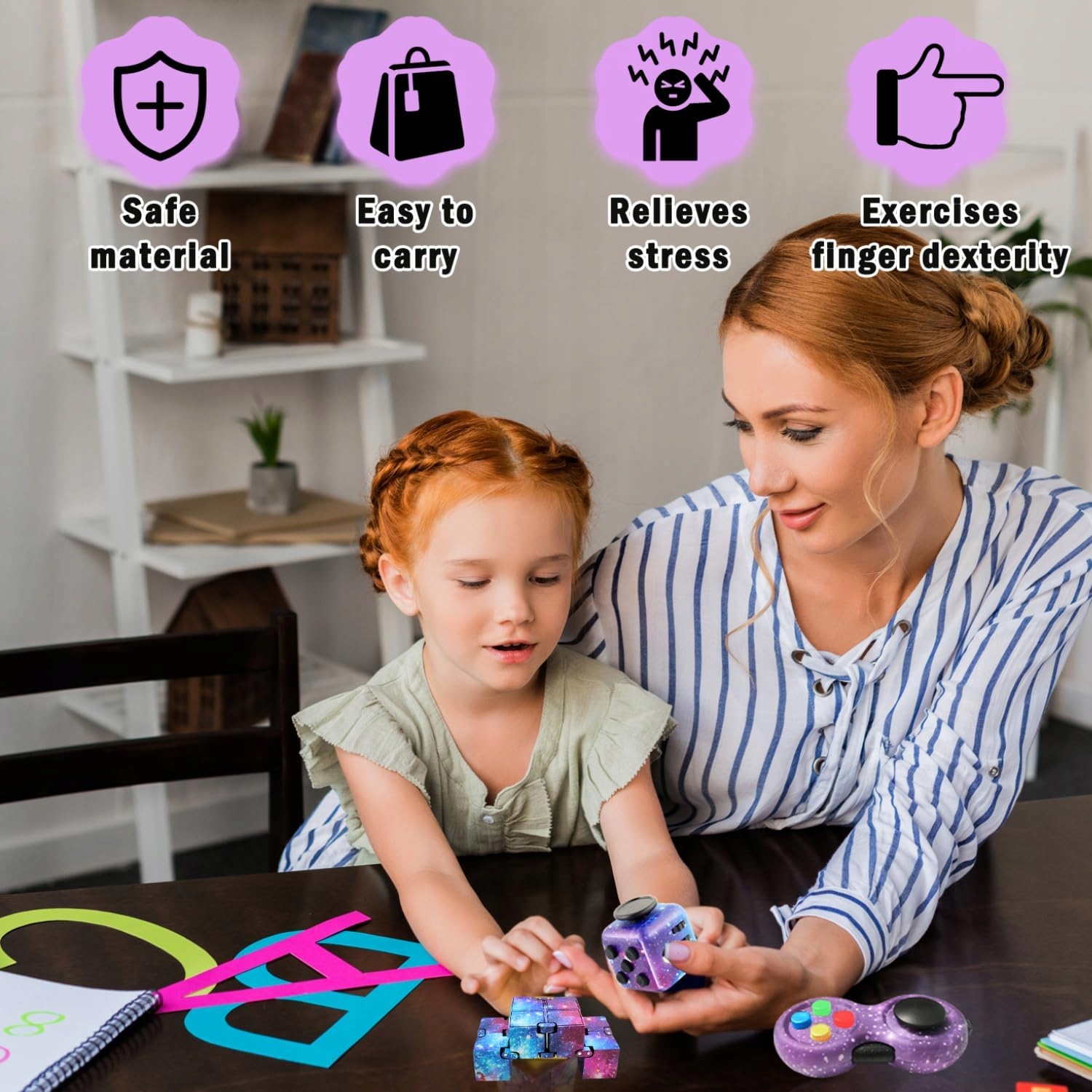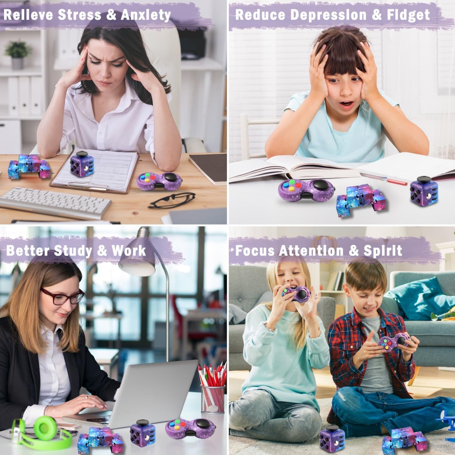 Badania wykazują, że drobne ruchy dłońmi, jakie umożliwia Kostka antystresowa Fidget Pad Cube, pomagają mózgowi lepiej filtrować rozpraszające bodźce zewnętrzne. Jest to szczególnie pomocne podczas nudnych wykładów, długich spotkań biznesowych czy nauki do egzaminów. Dla dzieci jest to bezpieczny sposób na rozładowanie nadmiaru energii, a dla dorosłych – dyskretna metoda na uspokojenie drżących rąk lub stresu związanego z rzucaniem palenia. Zestaw 3 sztuk to także świetny pomysł na prezent dla rodzeństwa lub kolegów z biura.