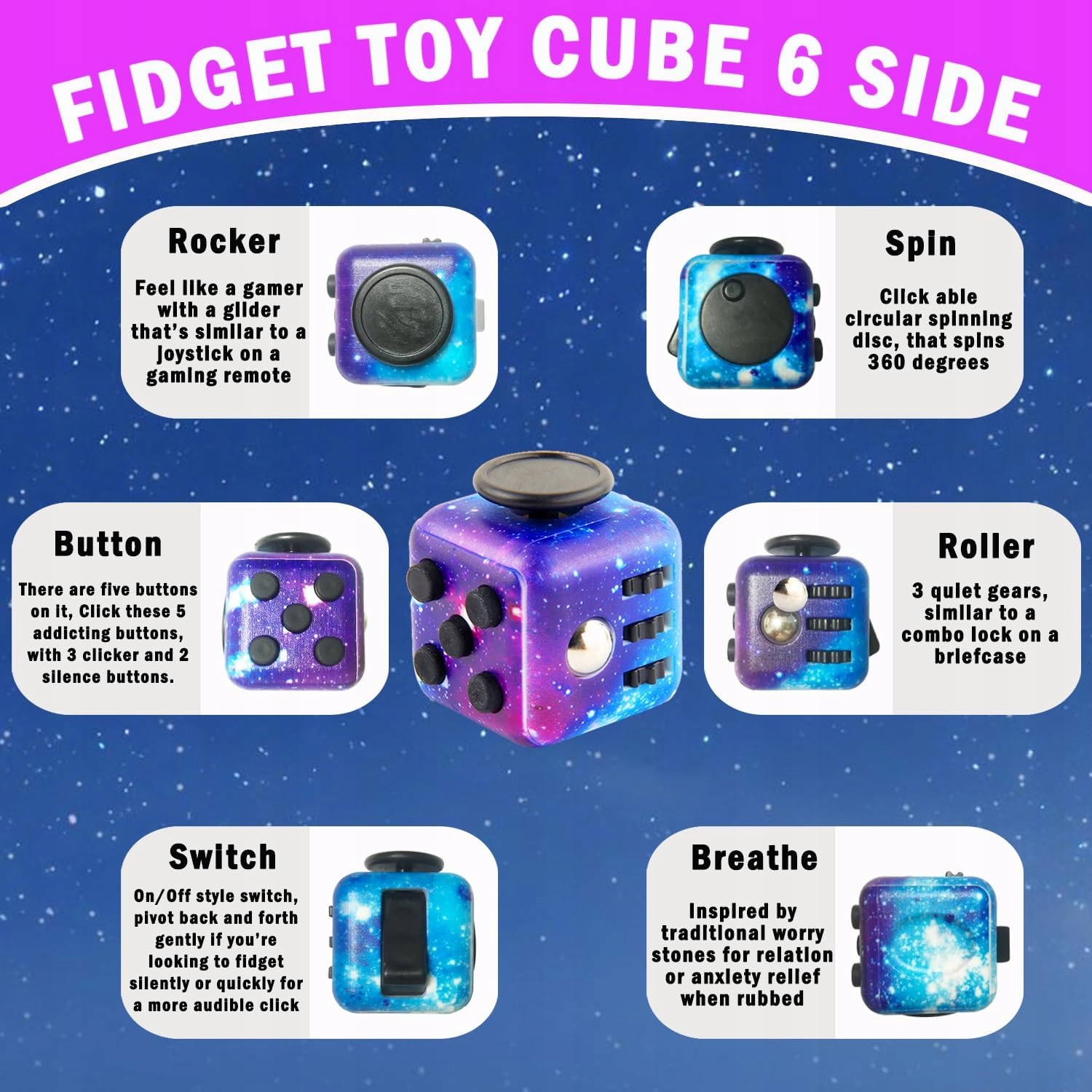 🕹️ 6 mechanicznych funkcji Kostki antystresowej Fidget Pad Cube