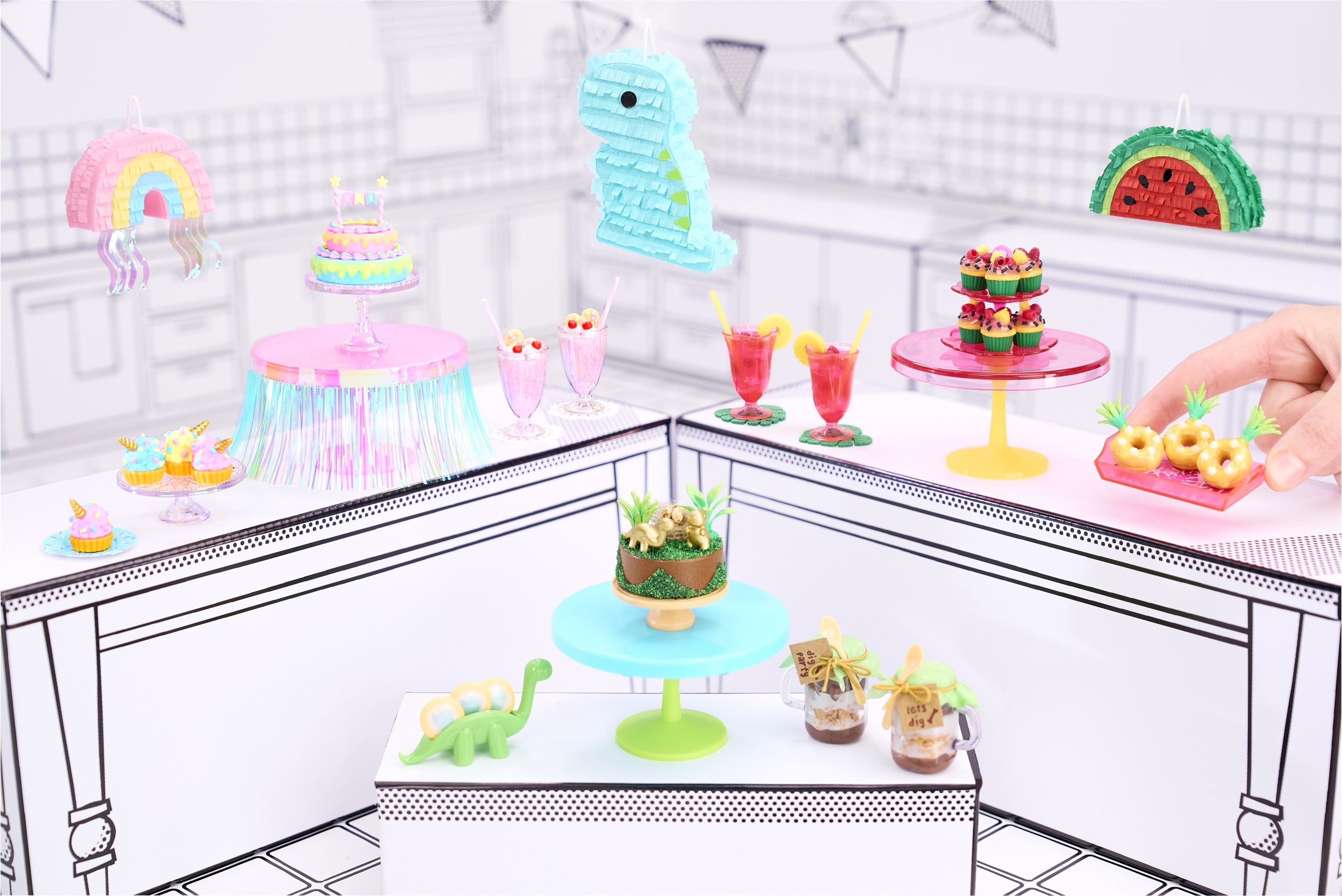 W sercu produktu MGA Miniverse Kula Niespodzianka Urodziny drzemie bogactwo realistycznych niespodzianek, które zachwycą każdego fana detali. Do zebrania jest kilkanaście unikalnych wzorów inspirowanych najpopularniejszymi słodkościami serwowanymi podczas przyjęć – od wielopiętrowych tortów z bitą śmietaną, przez babeczki z kremem, aż po dekoracyjne talerzyki i akcesoria imprezowe. Wewnątrz kuli znajdziesz nie tylko „półprodukty”, ale również miniaturowe naczynia, sztućce i tace, które służą do finalnej ekspozycji dzieła. Unikalną cechą Miniverse jest to, że gotowy produkt jest twardy, trwały i zachowuje intensywne kolory przez lata. To luksusowa zabawa w kolekcjonowanie, która porządkuje przestrzeń kreatywną – opakowanie może służyć jako wygodna stacja robocza podczas projektowania Twojego wymarzonego tortu.