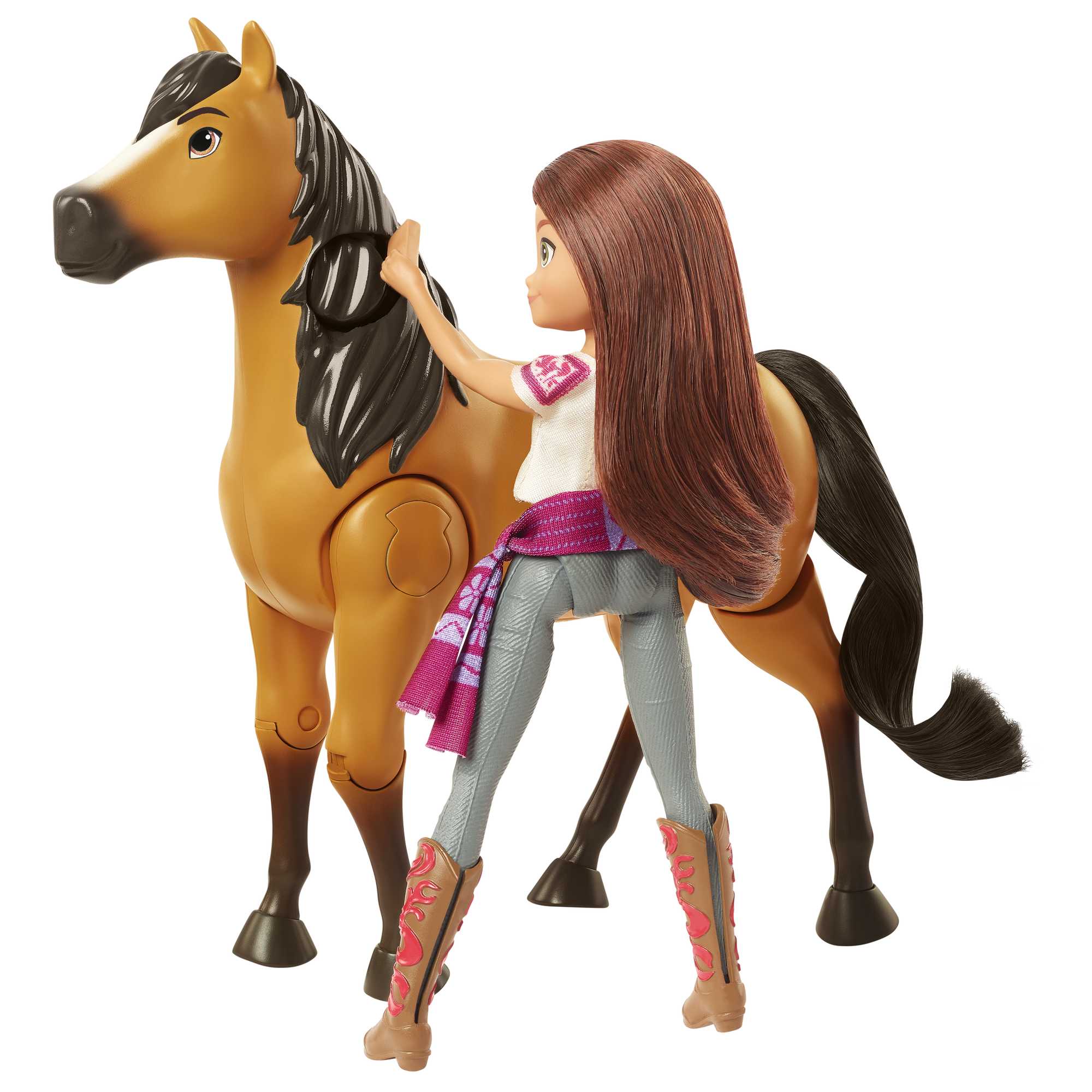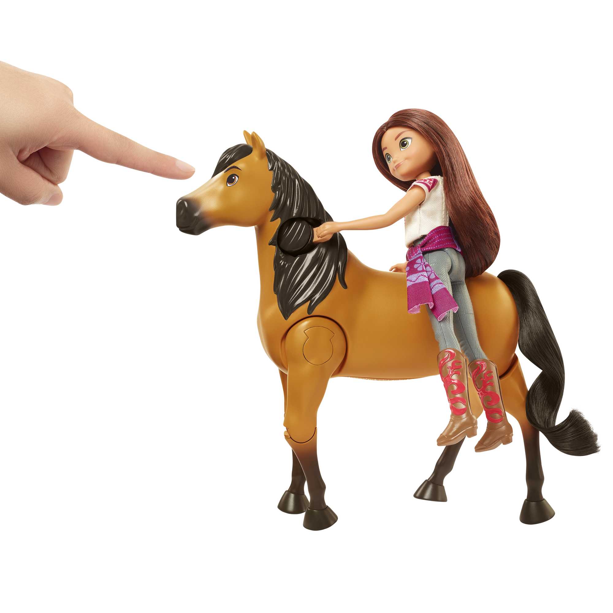 Interaktywność: Dzięki specjalnemu uchwytowi przy siodle, lalka Lucky stabilnie trzyma się na grzbiecie Ducha podczas „galopu”.