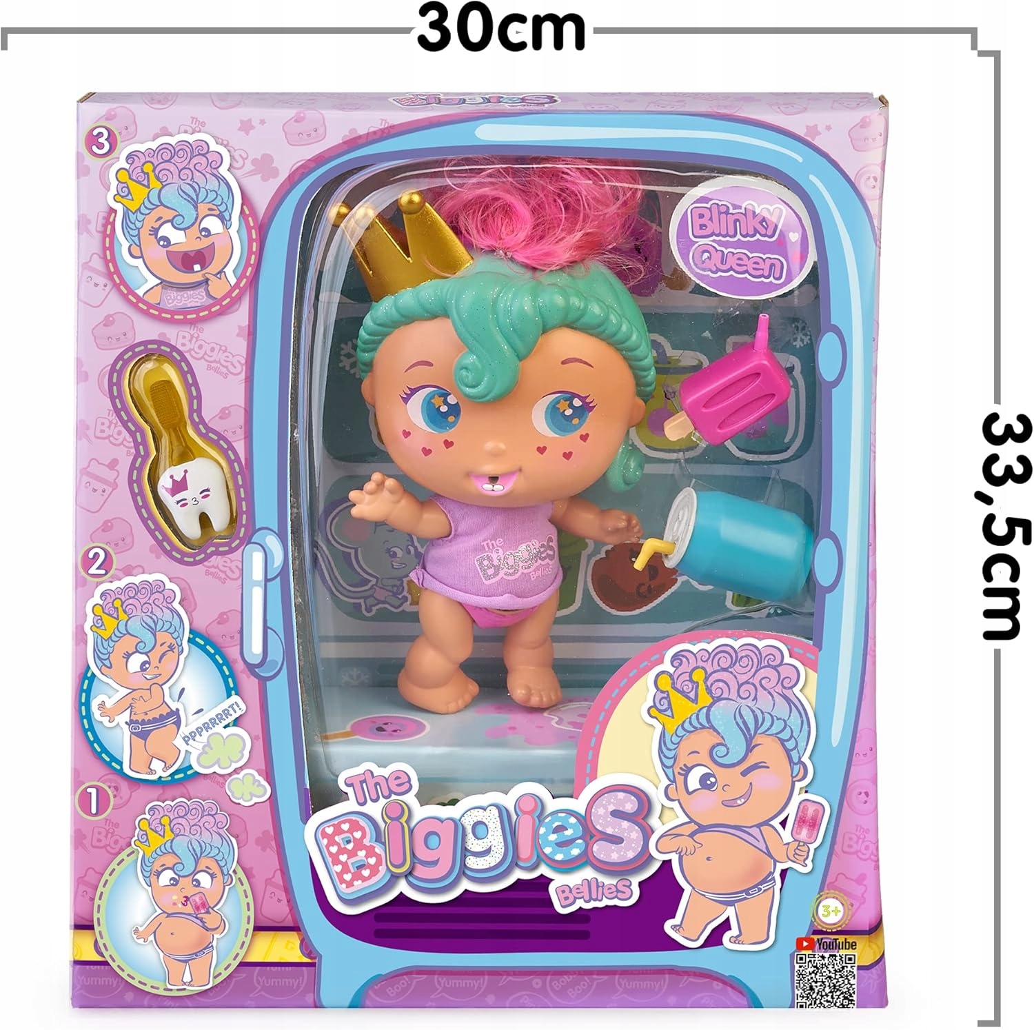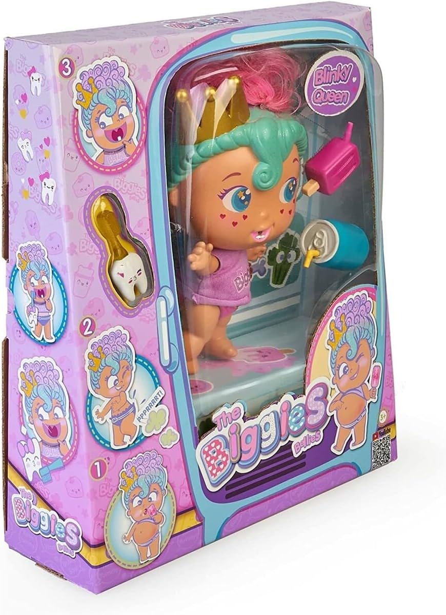 • 👑 Królewska zabawa: Blinky Queen to największa i najbardziej stylowa lalka z serii Biggies.