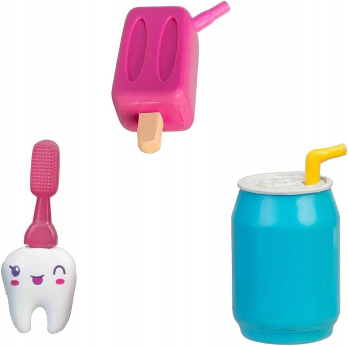 1. Funkcja Pompowania: Brzuszek lalki można „nadmuchać” (napompować), co symuluje jedzenie zbyt dużej ilości słodyczy – ulubionego zajęcia Blinky Queen.